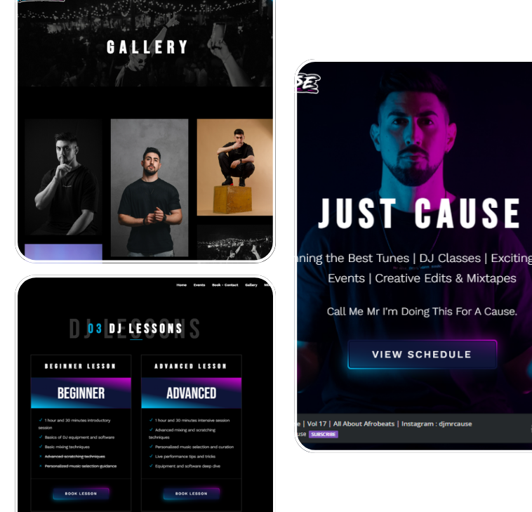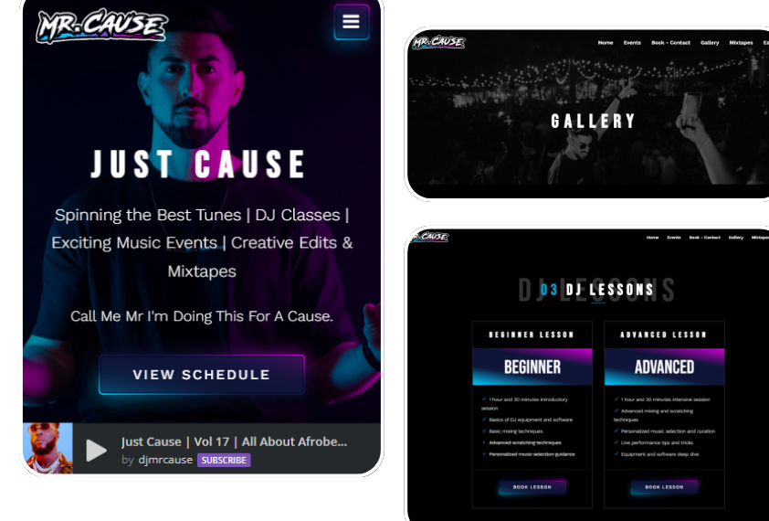 Developed a fresh and modern website for DJ - Mr Cause, one of the best RnB DJs in Cyprus, with an eye-catching homepage. The site features tabs for events, booking, lessons, contact, gallery, mixtapes, and edits. All content is editable through an admin panel, presenting his work in one place