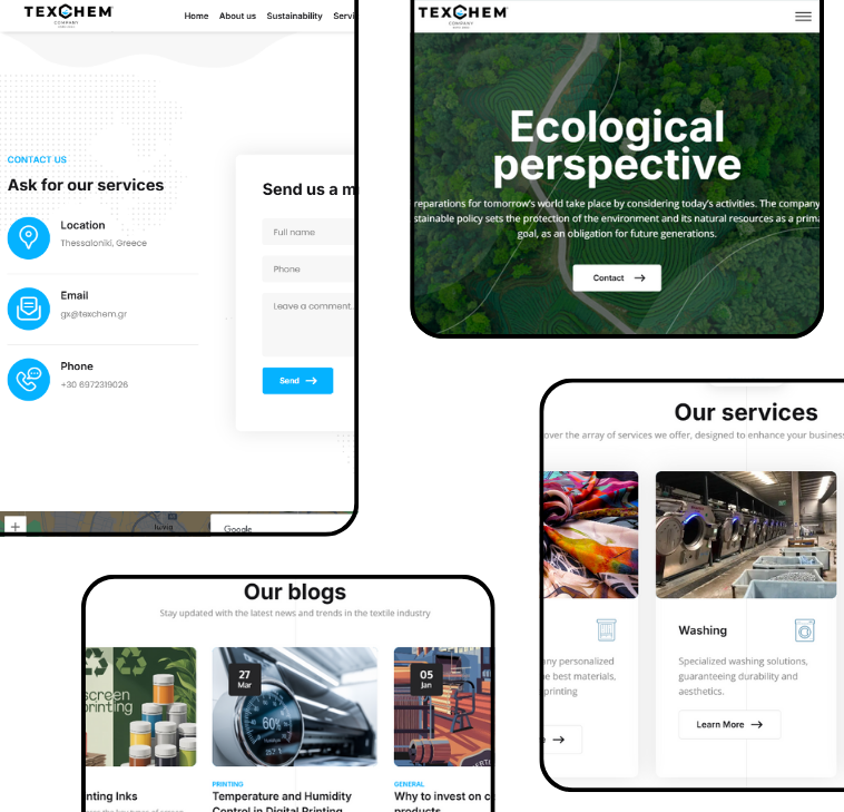 Built a content-rich website for a company specializing in printing, washing, and dyeing. The site includes extensive information on services, company details, new DTF printers, a contact form, and ecological initiatives such as sustainability, responsible commitment etc. Optimized for fast load times and easy navigation.